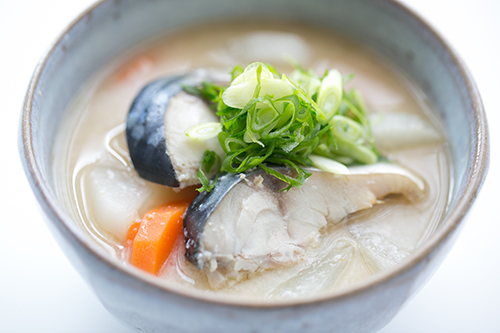 - ②適当な大きさに塩さばを切り、①に入れて火を通す。